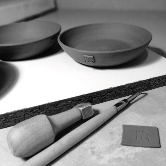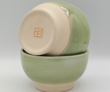 Our work is completely handmade. Every piece is created from the scratch, taking care of every detail. We dedicate the necessary time to each step of the process. This process begins with a piece that requires delicacy, because it is still too fresh and soft to work with. After we let it dry out a bit, we work on the surface and the edges, to improve certain finishes. We control the drying, so that it is not too fast, to avoid deformations. Once the clay feels dry, the piece can be fire in the kiln. After that, we glaze the piece, we work on the details of the glaze and then, it is ready for the second firing, so that the pottery is vitrified. In the end, as a result, each Kema cerámica piece is unique.